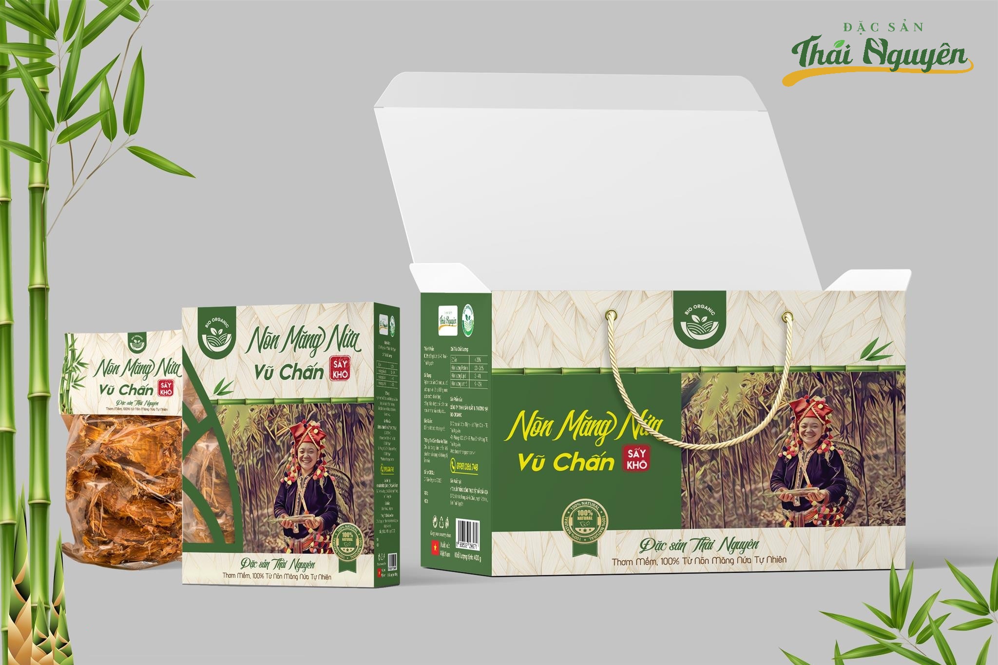 Vũ Chấn, Nghinh Tường, Sảng Mộc là các xã nằm phía Tây Bắc của huyện Võ Nhai, tỉnh Thái Nguyên với độ cao gần 1.000m so với mực nước biển. Thiên nhiên ban tặng cho nơi đây không khí mát mẻ quanh năm, đất đai màu mỡ, động thực vật vô cùng phong phú. Cây Nứa được phát triển ở nơi đây như một món quà mà thiên nhiên ban tặng cho Võ Nhai; Từ điều kiện khí hậu, chất đất và nguồn nước giàu khoáng chất đã sản sinh ra những cây Măng với chất lượng tuyệt hảo, khác biệt hoàn toàn so với măng nứa ở các vùng khác. Chính vì vậy, Cây Nứa luôn được người dân nơi đây chân quý, Măng Nứa trở thành đặc sản vô cùng giá trị của người dân Thái Nguyên. Từ bao đời nay tại Võ Nhai, người dân vẫn có truyền thống làm măng khô, nguyên liệu không thể thiếu cho món canh măng tuyệt vời mỗi dịp tết đến xuân về, tiệc mừng, gia đình sum họp hay thậm chí là những bữa ăn hàng ngày. Tuy nhiên, với tập quán phơi măng trên các ván tre dài ngày phụ thuộc vào thời tiết, đã làm giảm đi chất lượng của măng, rất rễ bị nhiễm vi khuẩn, nấm mốc gây hại, bụi bẩn không đảm bảo Vệ Sinh, rất khó bảo quản được thời gian dài và không chủ động được nguyên liệu. Chính những yếu tố đó khiến cho đặc sản Măng Nứa nơi đây chưa thể trở thành một loại hàng hóa. Với mong muốn phát triển Măng Nứa Khô Võ Nhai trở thành một Thương Hiệu Đặc Sản để giới thiệu đến với mọi khách hàng trên toàn lãnh thổ Việt Nam và vươn tới xuất khẩu ra Thế Giới, tạo công ăn việc làm và phát triển kinh tế cho người dân tại khu vực sản xuất, HTX Nuôi Trồng Động Thực Vật, Nấm Bản Địa đã nghiên cứu thành công quy trình sản xuất Nõn Măng Nứa Sấy Khô Bản Địa. Măng Nứa được sấy nhiệt gián tiếp trên các giàn Inox sạch sẽ, không bị nhiễm khói, nhiễm khuẩn, nấm mốc, đảm bảo VSATTP. Chính những điều trên đã tạo ra một đặc sản Măng Nứa có hương thơm ngào ngạt rất khác biệt, măng mềm, đậm đà & tinh túy. Sản phẩm 100% tự nhiên, không chứa bất kỳ hóa chất độc hại nào. Măng Nứa Bản Địa thực sự mang đến cho người tiêu dùng một đặc sản tuyệt hảo và an tâm về chất lượng.